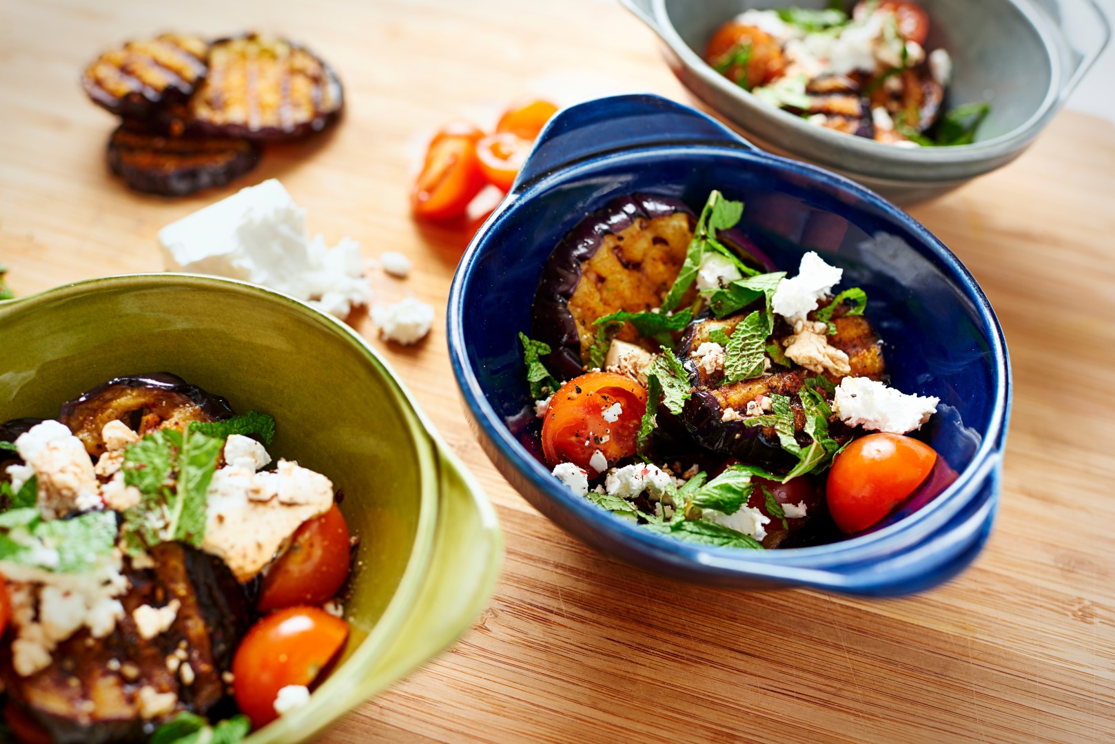 De aubergine en de grill zijn vriendjes van elkaar; beste vrienden. Op de BBQ of gewoon in de grillpan: altijd een succes. Dit keer maken we een klein gerechtje door een paar ingrediënten toe te voegen die geweldig bij elkaar passen. Heerlijk voor bij de BBQ tussen de stukken vlees door of gewoon als bijgerecht of voorgerecht. Super simpel, super snel, super lekker!