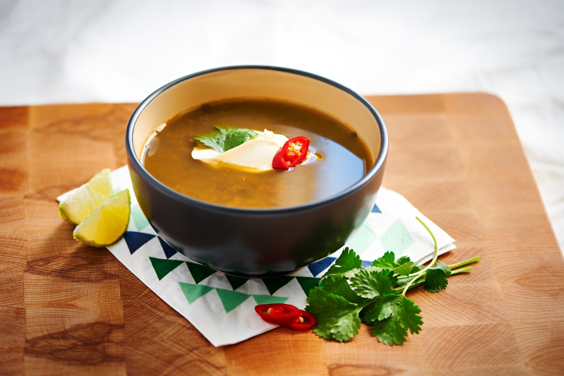 5. Breng de soep verder op smaak met zout, peper en limoensap.